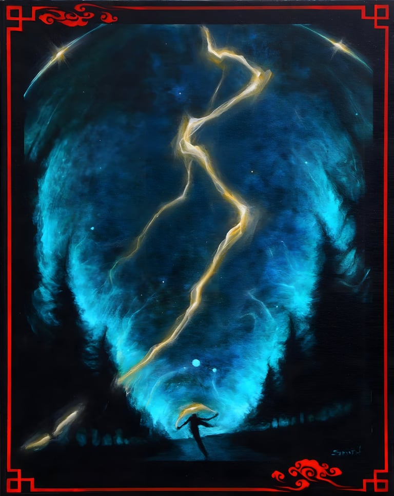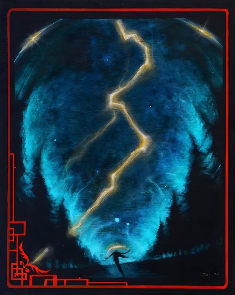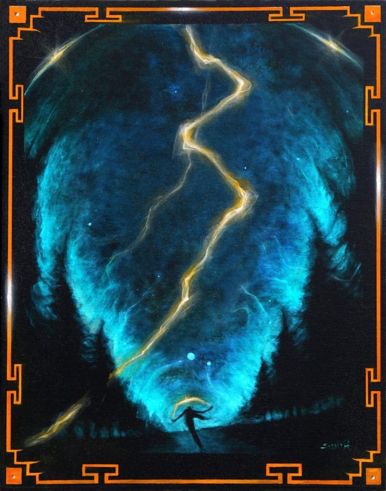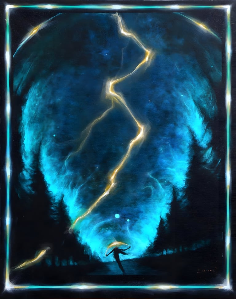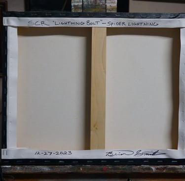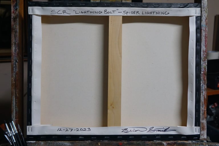These one-off special creations had their bolt digitally removed and Brian then painted onto the canvas. Every bolt is unique! Each piece comes with a beautifully hand-painted frame that is inspired from Transient Luminous Events (TLE) that naturally occur "outside/above" the lightning bolt. It doesn't get in the way of the original art so you get to take in it's full glory!