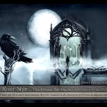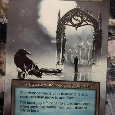 River Styx is one of the Curio Cards in Alpha. Curios are the rarest cards that debuted in Sorcery Alpha, showcasing the history of Sorcery card evolution.
