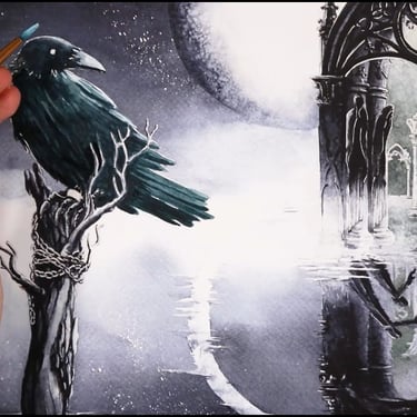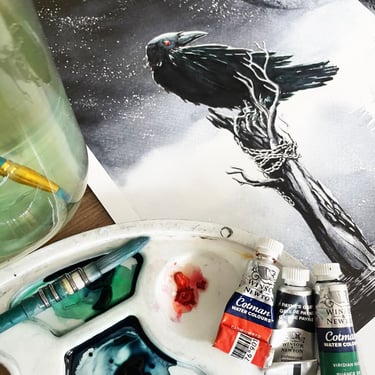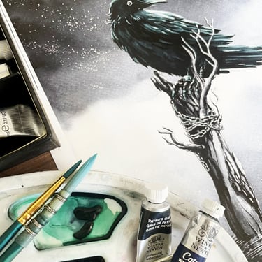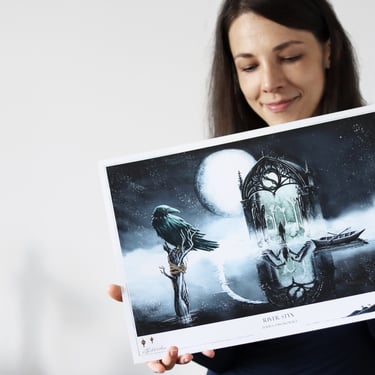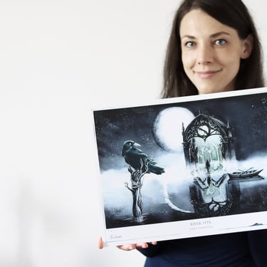 With Elwira, the crow on each piece is digitally removed before sending for ultra high quality printing. She then graciously committed several hours on each piece to completely hand paint the crow with her favourite medium, watercolor, and make this available for fans and art enthusiasts. The result is stunning!