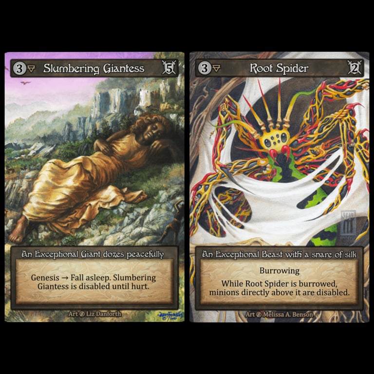 In Sorcery: Contested Realm, timing and tempo are critical. That’s why this combo of Root Spider and Slumbering Giantess is a game-changer in the early game.