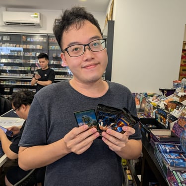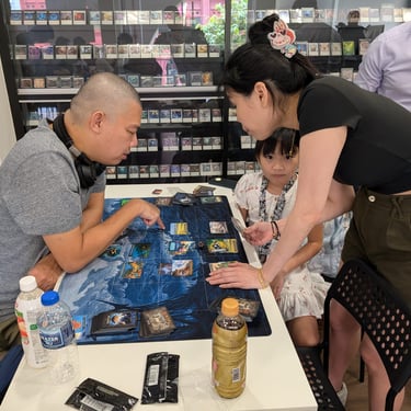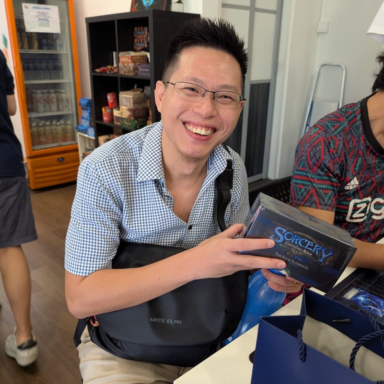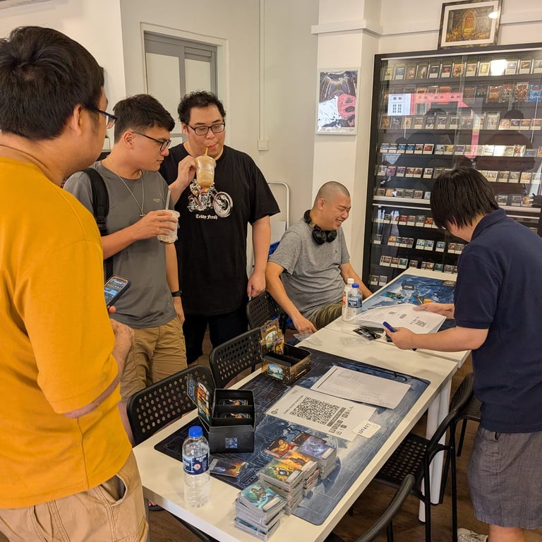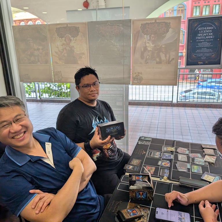 Yaqiong prepared all the store-made starter decks, and ensured a smooth registration for all who participated and brought their family and friends for the Squire Trials (Learn to Play). Everyone also receveid a Beta Box Topper Pack and a random Beta Non-Foil Unique/Elite card for participating.